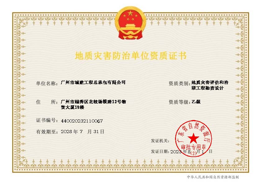 地質(zhì)災害評估和治理工程勘查設計乙級資質(zhì)